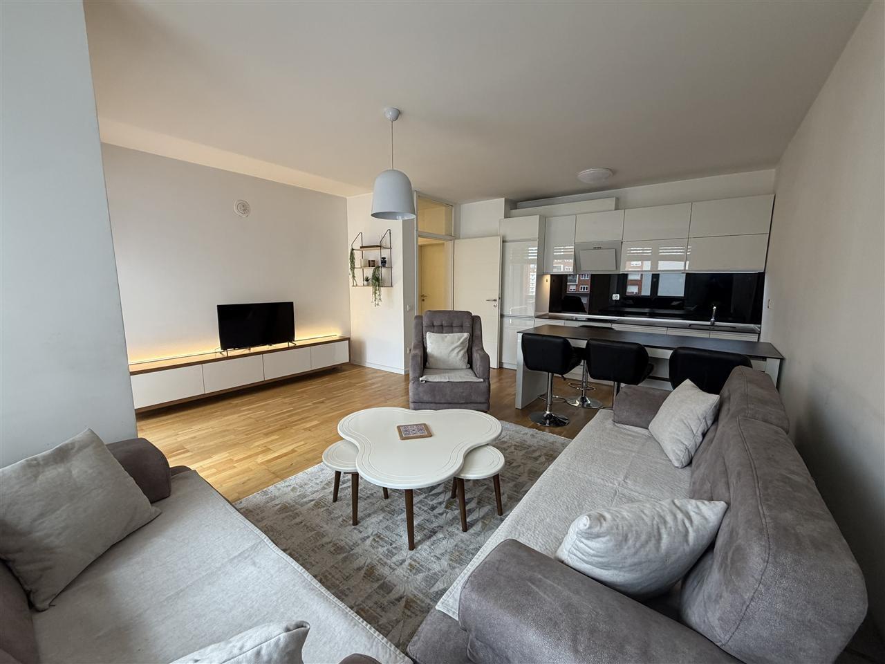 Ofrohet për qira Banesë 1+1 në Rrugën B, banesa gjendet te Kawa Group, ka një sipërfaqe prej 60m2 dhe ndodhet në katin e 5-të me ashensor funksional, me kushte shumë të mira banimi, e mobiluar komplet dhe e gatshme për banim. Renditja | Sallon me Kuzhinë | Dhomë Gjumi | Banjo | Ballkon |