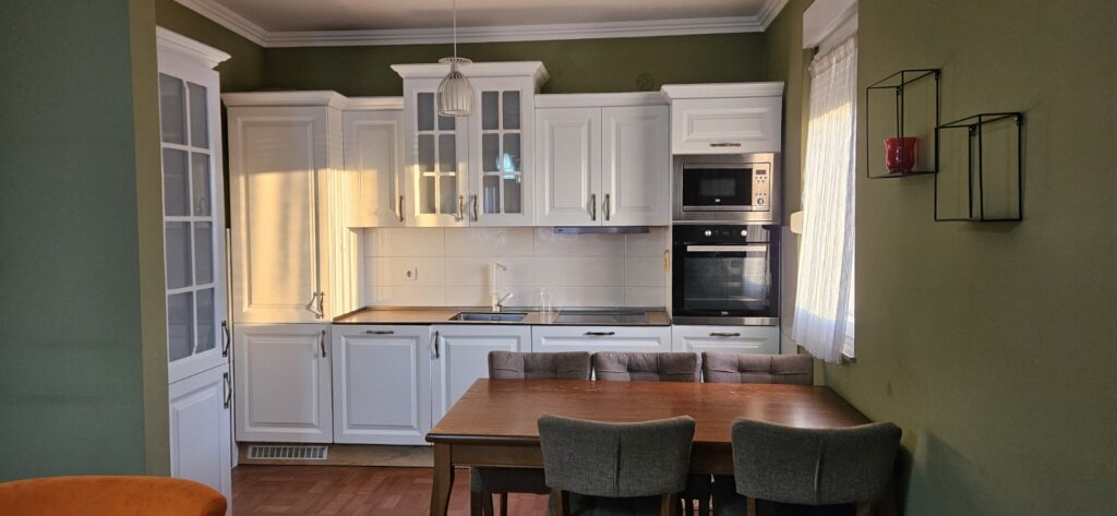 Gjeni rehatinë dhe komoditetin që kërkoni në Rrugën B te BKT-ja, apartament me sipërfaqe prej 115 m² në katin e 8-të! Me 3 dhoma gjumi, një sallon modern me kuzhinë dhe 2 banjo, banesë e mobiluar plotësisht. Shijoni avantazhet e një lokacioni fantastik në Rrugën B, me qasje të lehtë në institucionet dhe shërbimet kryesore të qytetit. Ngrohtësia dimërore është e siguruar me sistemin Termokos!