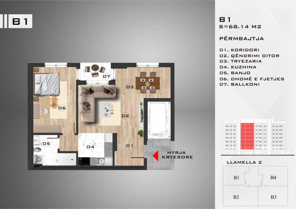 | Sipërfaqja | 68m2 |
