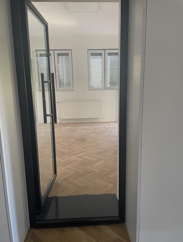 Ofrohet për qira Banesë (Zyre) në Qendër, banesa gjendet afër Sheshit, ka një sipërfaqe prej 90m2 dhe ndodhet në katin e 2-të, me kushte të mira, mund të shfrytëzohet për veprimtari të ndryshme biznesore. Renditja | 3 Hapësira Pune | Banjo | Wc | Ballkon |